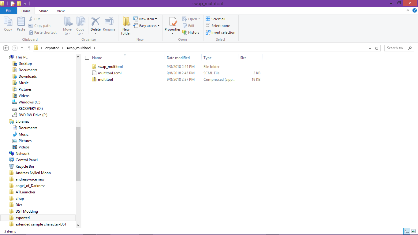 Andreasgamming Posted September 8, 2018 Share Posted September 8, 2018 5 hours ago, asd988 said: Please give some example! not working exported.zip I found your issue, your File structure is incorrect, you need two separate folders for the idle and the swap animations of the tool This is how it should look in Exported. This is the structure of the swap_multitool folder And this is the structure of the multitool folder. I also noticed your sprites are quite big, you may want to take them to your favorite art program and change their size to ~240 x 240 or small enough so it wont look like a Giant's tool this is for the idle or on the ground sprite, and for the equipped or swap_ sprite ~177 x 340. And I almost forgot! And an Error I had made in the Exported swap_multitool file The .scml and the build zip should also be called swap_multitool Link to comment https://forums.kleientertainment.com/forums/topic/95200-item-texture-problem/#findComment-1082611 Share on other sites More sharing options...
