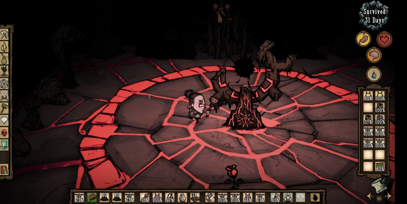 deludeddaybreak Posted October 13, 2018 Author Share Posted October 13, 2018 (edited) 9 hours ago, ResettePlayer said: Whoops, sorry, I just realised that the reference link I gave you wasn't very helpful--so I'll just link to the wiki: http://dontstarve.wikia.com/wiki/Ancient_Gateway Adding texture can depend a lot on what software you're using. If your software has layers and a chalk brush, you could lightly cover your stones in a layer under the purple light and lineart and that would make the stone look grainy. If your software doesn't allow that, though, you'll most likely have to rely on line and splotches of flat colour. Reveal hidden contents Using this as an example... Having the colour splotches be very close to the base colour, but not quite matching should work well. Having the splotches uneven will ideally make the stone look older and rougher--if it's too clean and regular, it'll look polished. Using light, quick line strokes can help make something look textured as well. Be careful to make them thinner and/or less black than the outline, so that it looks more like the surface of the object that's facing you. Having the lines be less clean-looking than your outline may help as well. Even drawing little shapes that resemble chips or chunks taken out of the object can help too. Sorry if this is unclear--texture can be hard to explain sometimes. I've tried a few suggestions but I'm still having trouble getting the face of the gateway to look the way I want it to. Am I on the right track at least? Edited October 14, 2018 by deludeddaybreak updated artwork 3 Link to comment https://forums.kleientertainment.com/forums/topic/96414-anicent-gateway-art/#findComment-1093932 Share on other sites More sharing options...
