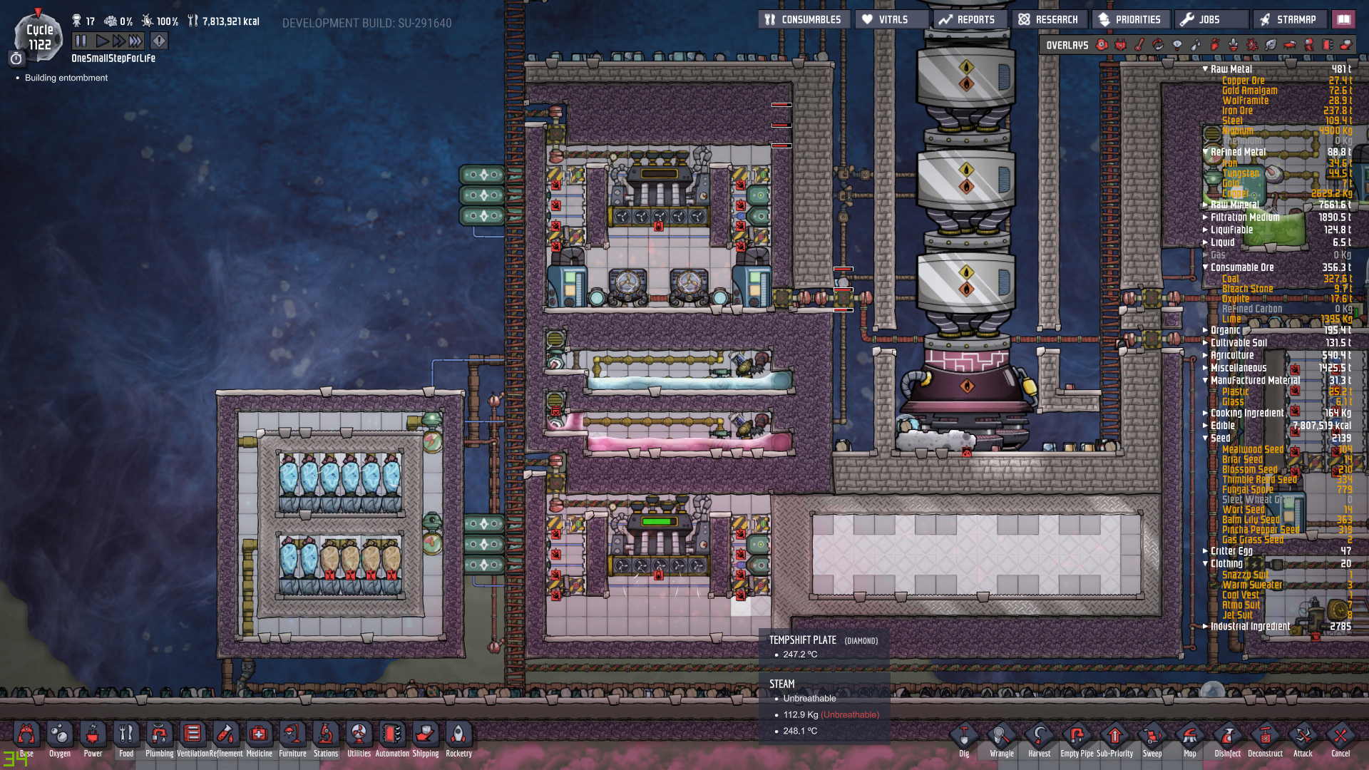 And that's just one bloody steamer.  Any steamer.  The thing is a hole in spacetime into which energy just vanishes.  Your dupes looked at the anti entropy thermo- nullifier and said "Cool tech.  But does it come in steampunk?  Also, can we make it more?  Like, take 100 of them and pack em together, turn it on, and then run."