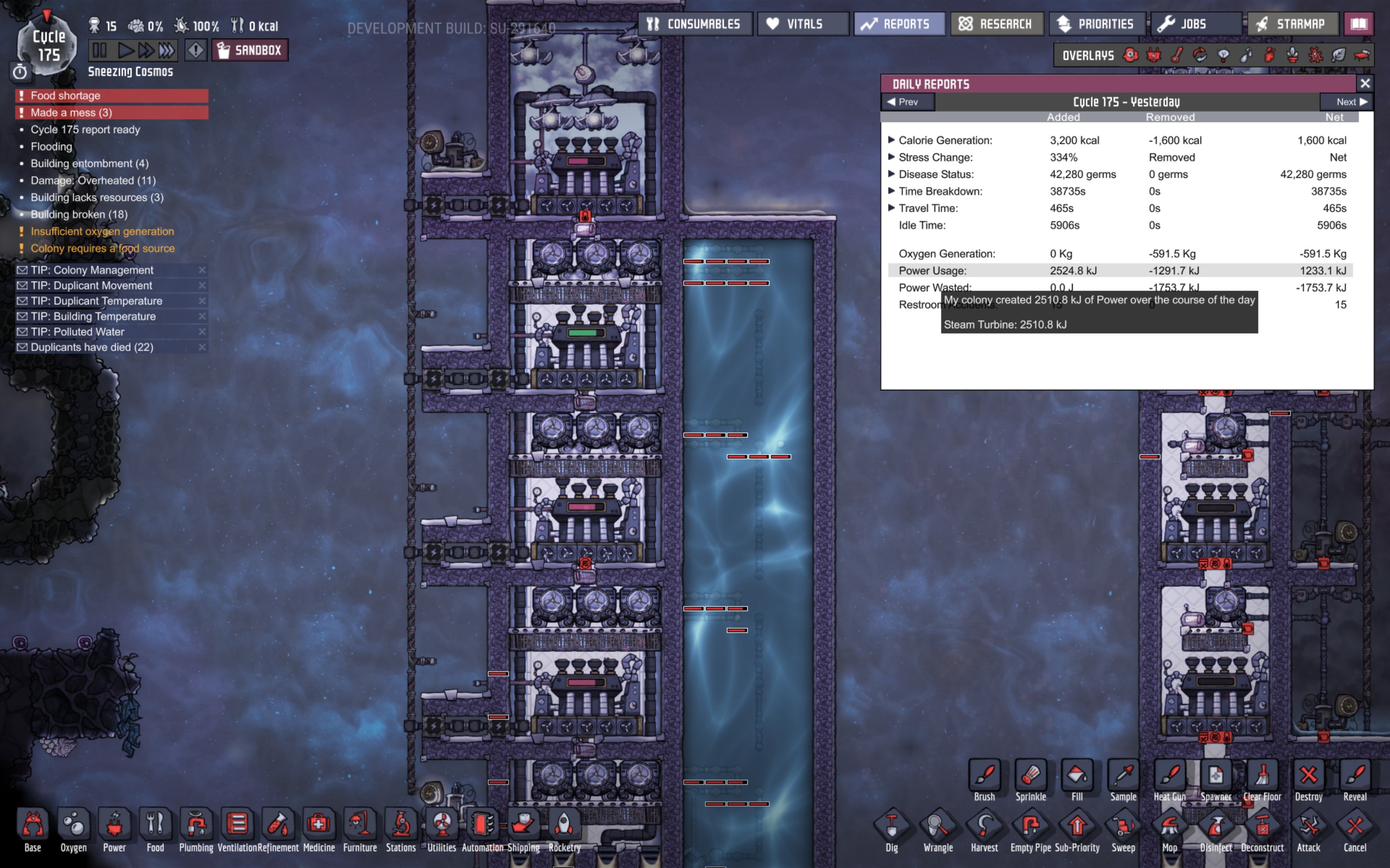 Nickerooni Posted November 8, 2018 Share Posted November 8, 2018 23 minutes ago, Iriswaters said: Hmm. But what is your steam source? My steam source is 260 degree big bin of 1000kg steam per tile. I didn't do the whole condensation setup, since I know how that works :). Plus, it's taken 20 cycles for the last of steam turbine to start running even. The next turbine won't run until it hits a backpressure scenario. I'm just heating it with a pipe of supercoolant that enters at 300 degrees and exits at 260 degrees. That's much supercoolant carries 3.3 MDTU/s. Almost 3 aquatuners. I'm not saying that I'm producing 1000W for 3.3 MDTU/s. The system hasn't stabilized. I'm just saying that it's not hard to pipe in a lot of heat on your steam source. I'm not sure how you'd automate such a monstrosity. You can't just turn it off like a hydrogen generator. I don't think so anyway. Looking at more reports, it looks like the 250-255 degree steam keeps this thing running at about an average of 2000W. But, even a cycle isn't enough to keep the output steady. Therefore, this system is exactly the same as a single steam generator with one tile blocked!!! Very cool! And it's not that much bigger. Just 16 tiles taller. Link to comment https://forums.kleientertainment.com/forums/topic/98085-i-present-to-you-the-thermal-annihilator/page/2/#findComment-1111700 Share on other sites More sharing options...
