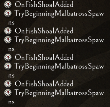 • TryBeginningMalbatrossSpawns updates the _shuffled_shoals_for_spawning list (since it doesn't exist yet), which ends up having 1 item