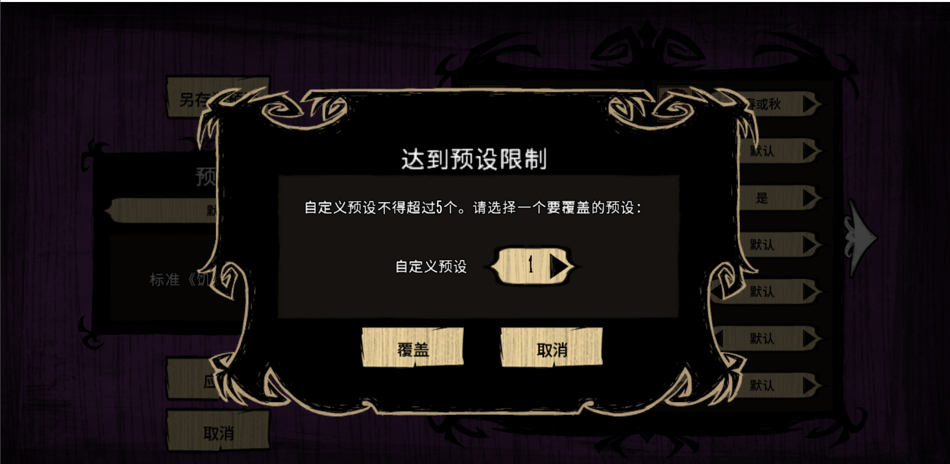 点击世界设置进去之后,无论点什么都弹窗提醒预设以满,卸载清理文件重新安装都没有解决。