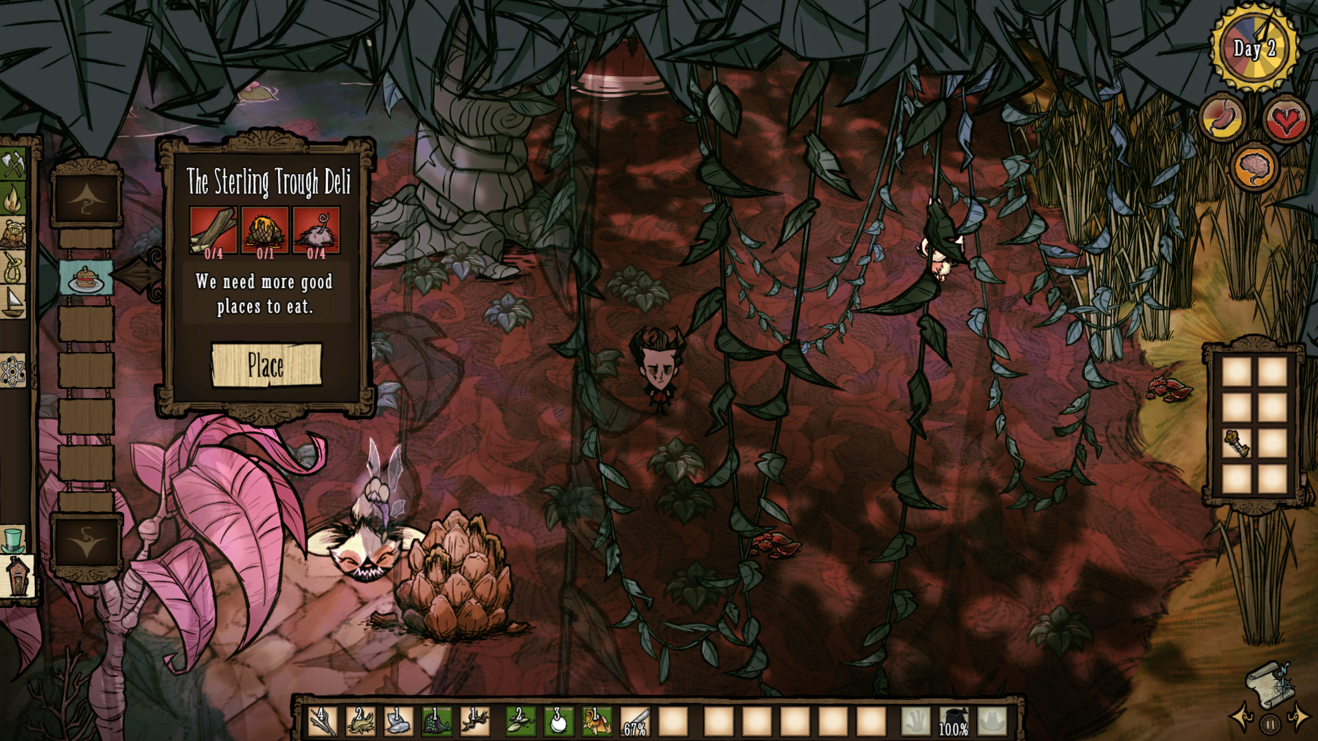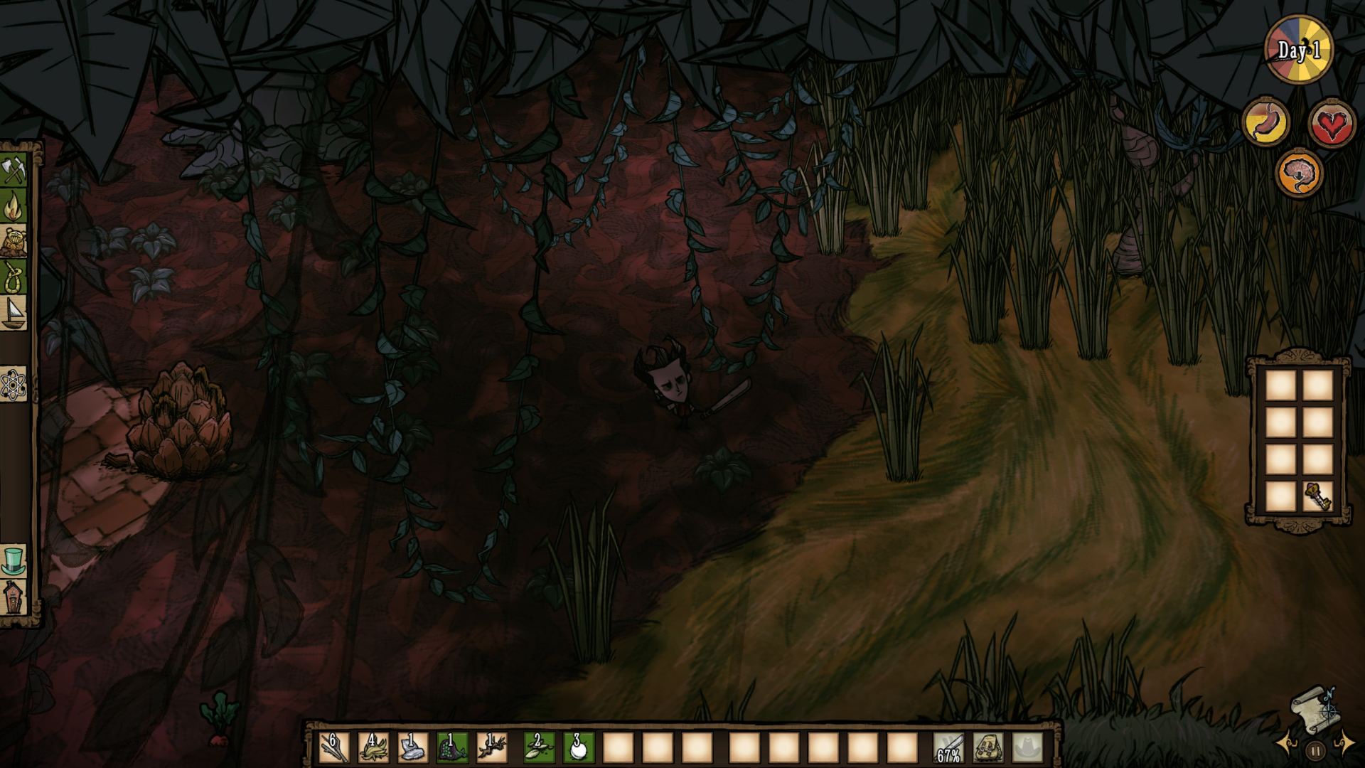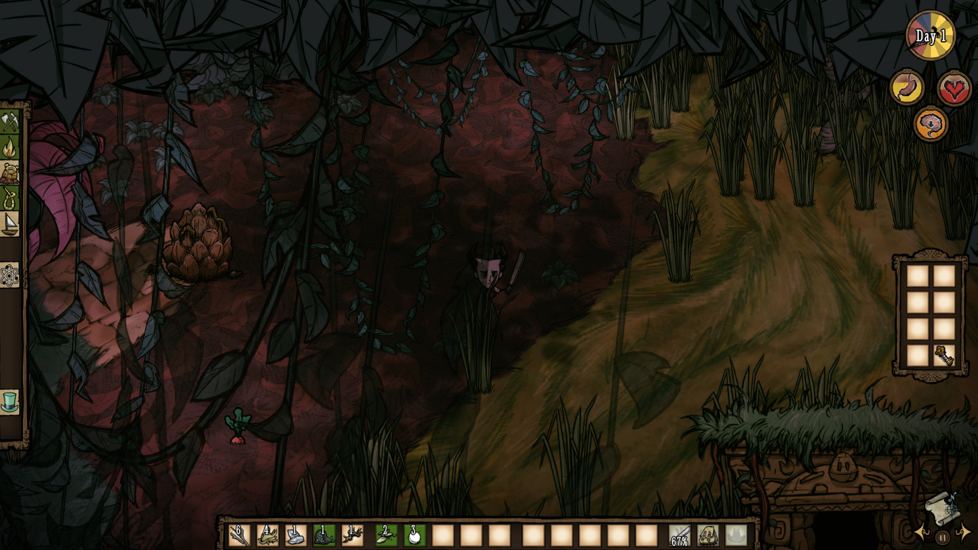 When I hold the Key to the City in a backpack or a Vortex Cloak (presumably also a Piggyback or a Krampus Sack, but I didn't check) the City Planning tab appears and disappears as I move around. It happens predictably when I get close to things like tall grass or fireflies but that doesn't seem to be the only thing that causes it. The tab remains consistently present in the sidebar if it's in my main inventory no matter where I'm standing as long as I'm outdoors. Picking up the key with my cursor and then putting it back in the same inventory slot restores the tab to my sidebar up until the next time I move into a position that causes it to disappear. If I have a structure from that tab prebuilt then the tab stays present but everything other than that structure disappears, like when you have exactly one recipe from a tab prototyped. If I have materials to build a structure but haven't prebuilt one, then it will also make the new-recipe dinging noise every time the tab reappears, which could get annoying.