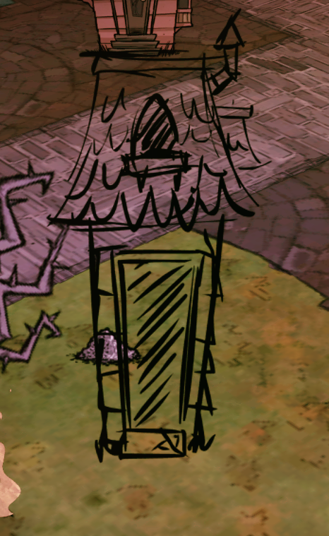 The burnt art for the Slanty Shanty is sketched, clearly looking like a placeholder rather then a finished thing.