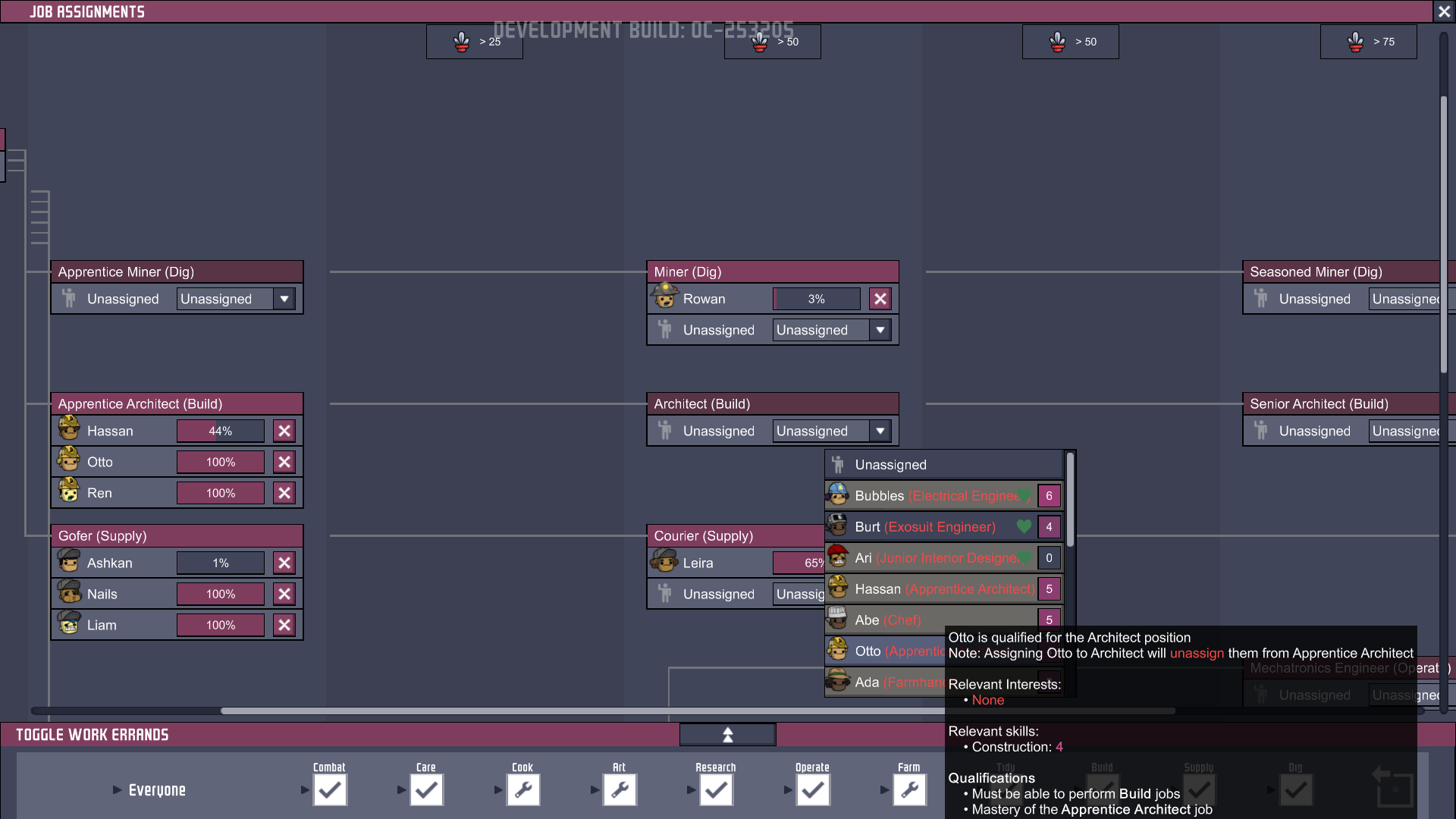 Whenever I try to select someone near the bottom of the list (2nd to last) it just closes the menu, when I reopen that selection is highlighted. Same results when assigning a job to a jobless dupe