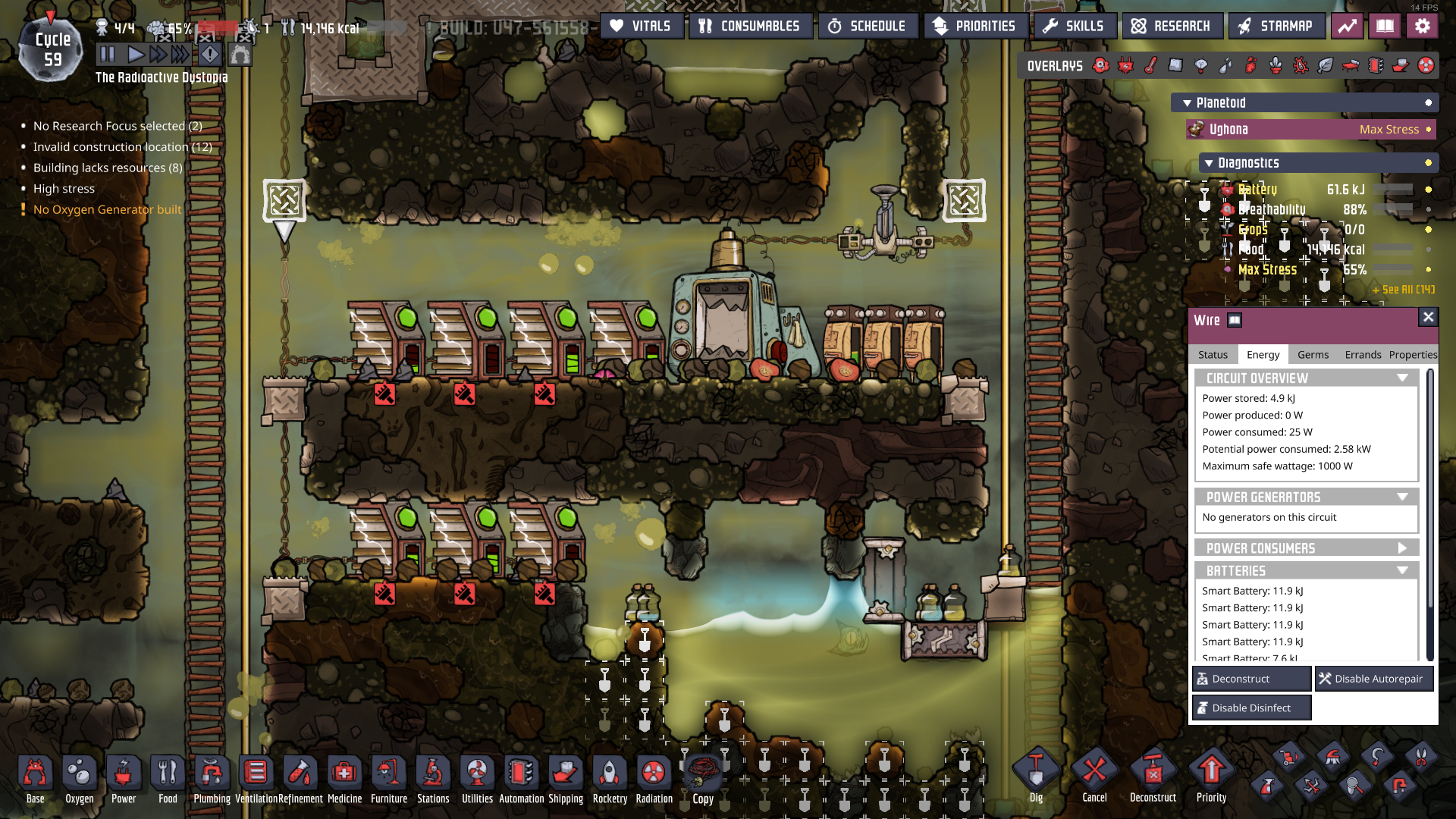 When loading into my save I can see a correct value for stored power on my circuits, but as soon as I start the simulation (unpause for a few seconds) the value changes to a value lower than 20kJ, which neither matches an average nor the value of any individual battery (at least in all my tests).