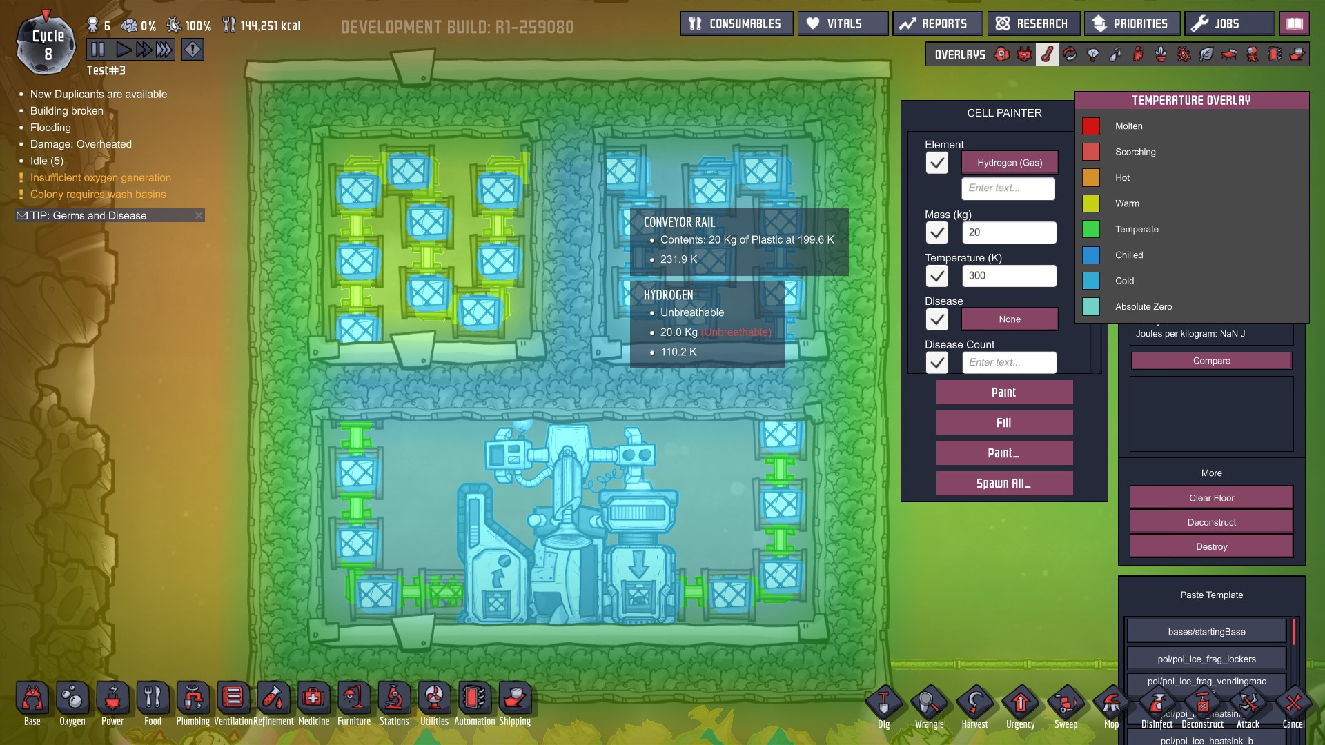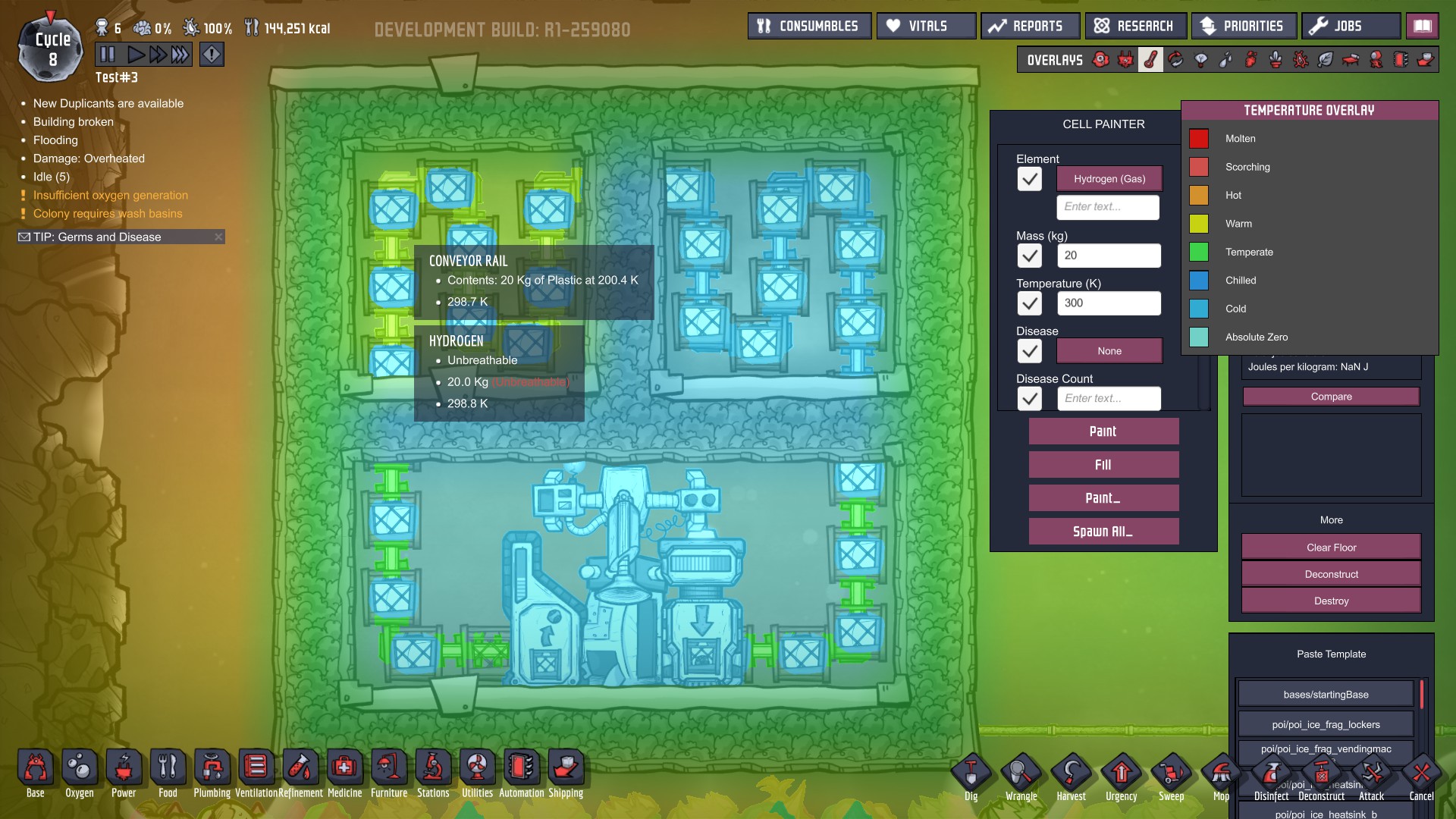 Build a Heat exchange system with conveyor rails and find it not working while off-screen.
