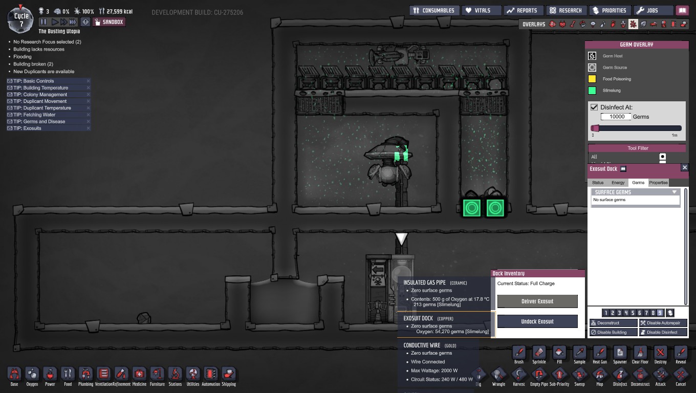 supply an exosuit dock with O2 contaminated with slimelung, watch and see if dupes who use it get slimelung