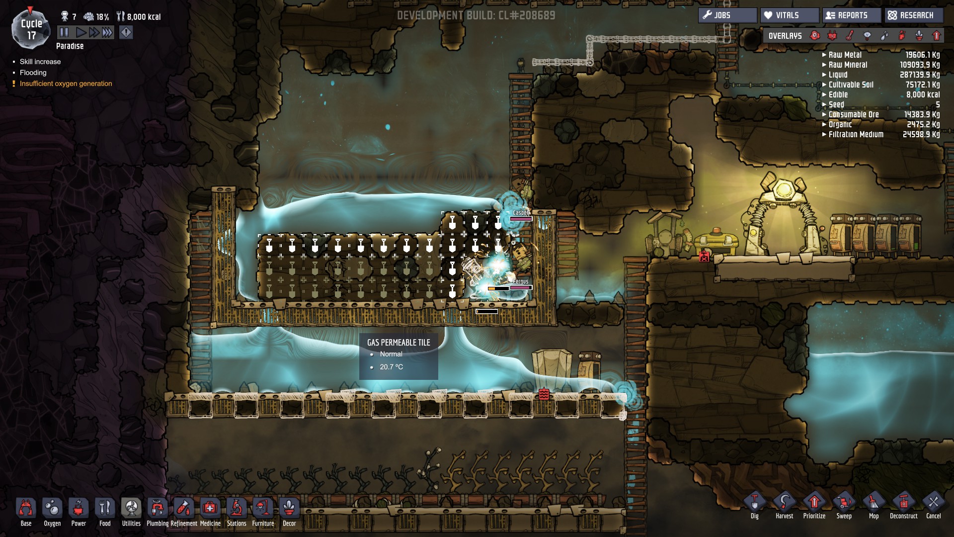 I had a rather large pool of clean water that I wanted to keep from spilling out as I was mining my Base out and expanding. So before I messed with the water I build a gas permeable pool under it so I could tunnel down from above and hollow it out and keep all my water. before I even started digging out the pool, the rocks adjacent to the gas permeable tiles started cracking and this for some reason sent all that water spilling out the other side of the gas permeable tiles and spilling out all over the area below. I prioritized mining out the adjacent blocks to stop the slow leak. As my dupes actually cleared the blocks adjacent to the gas permeable tiles, water literally just spilled out, every last drop of the body I was trying to contain spilled out below. the floor below that had gas permeable tile retained it just fine.....