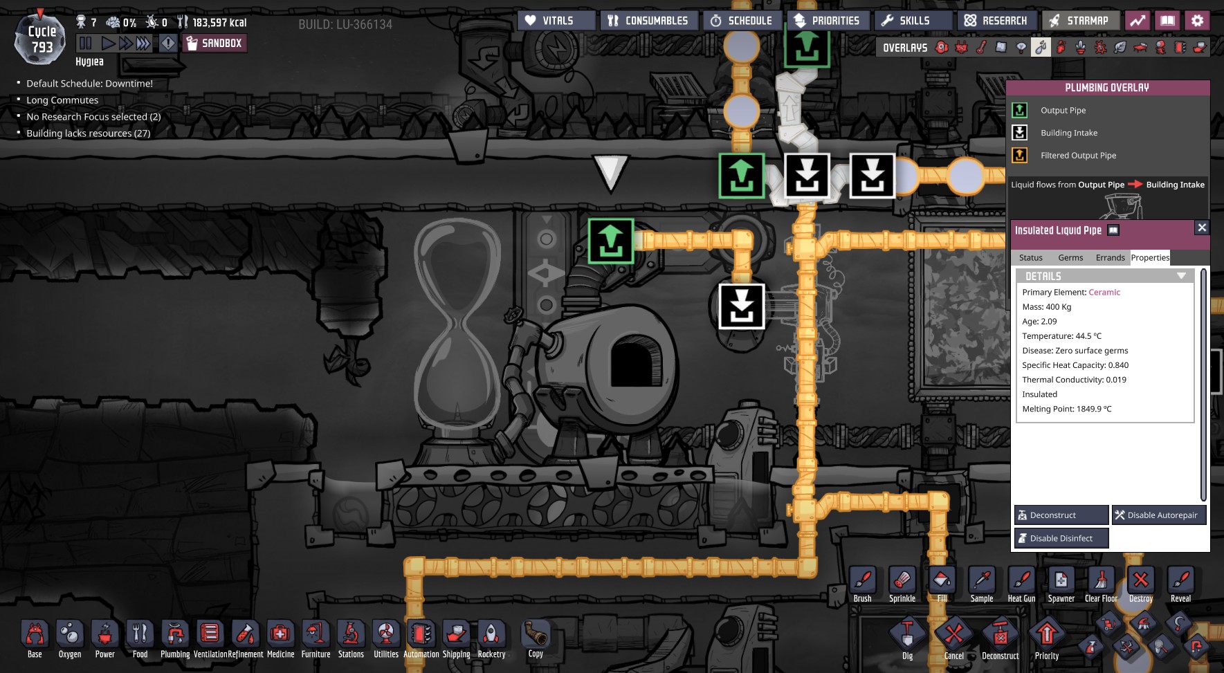 If you build (for example) a standard pipe, and change it to an insulated pipe without deconstructing the old pipe, the glass will keep warning about the risk of melting for the standard pipe that is no more in place.