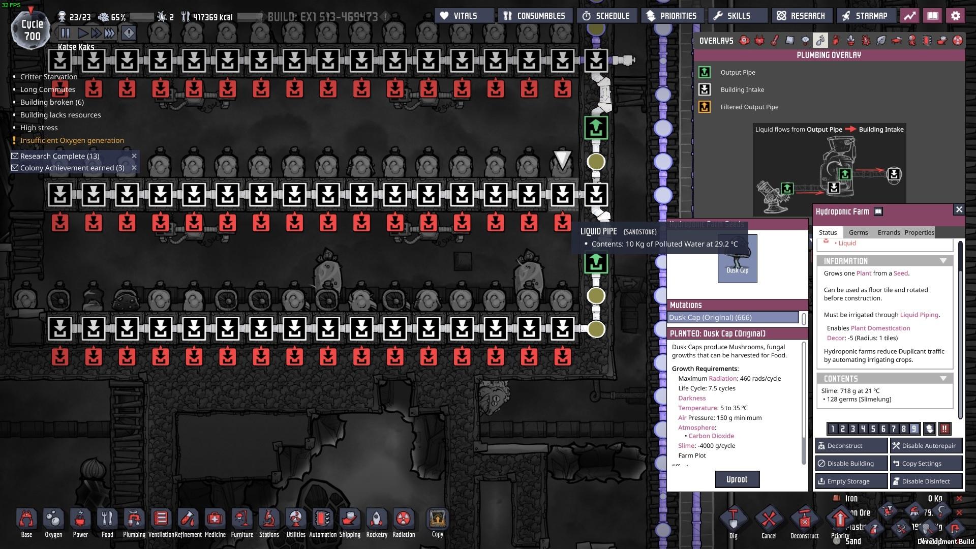 When ever I reload my savegame (or any of the autosaves, etc.) some of my hydrophonic farms drop their liquid ingredients.