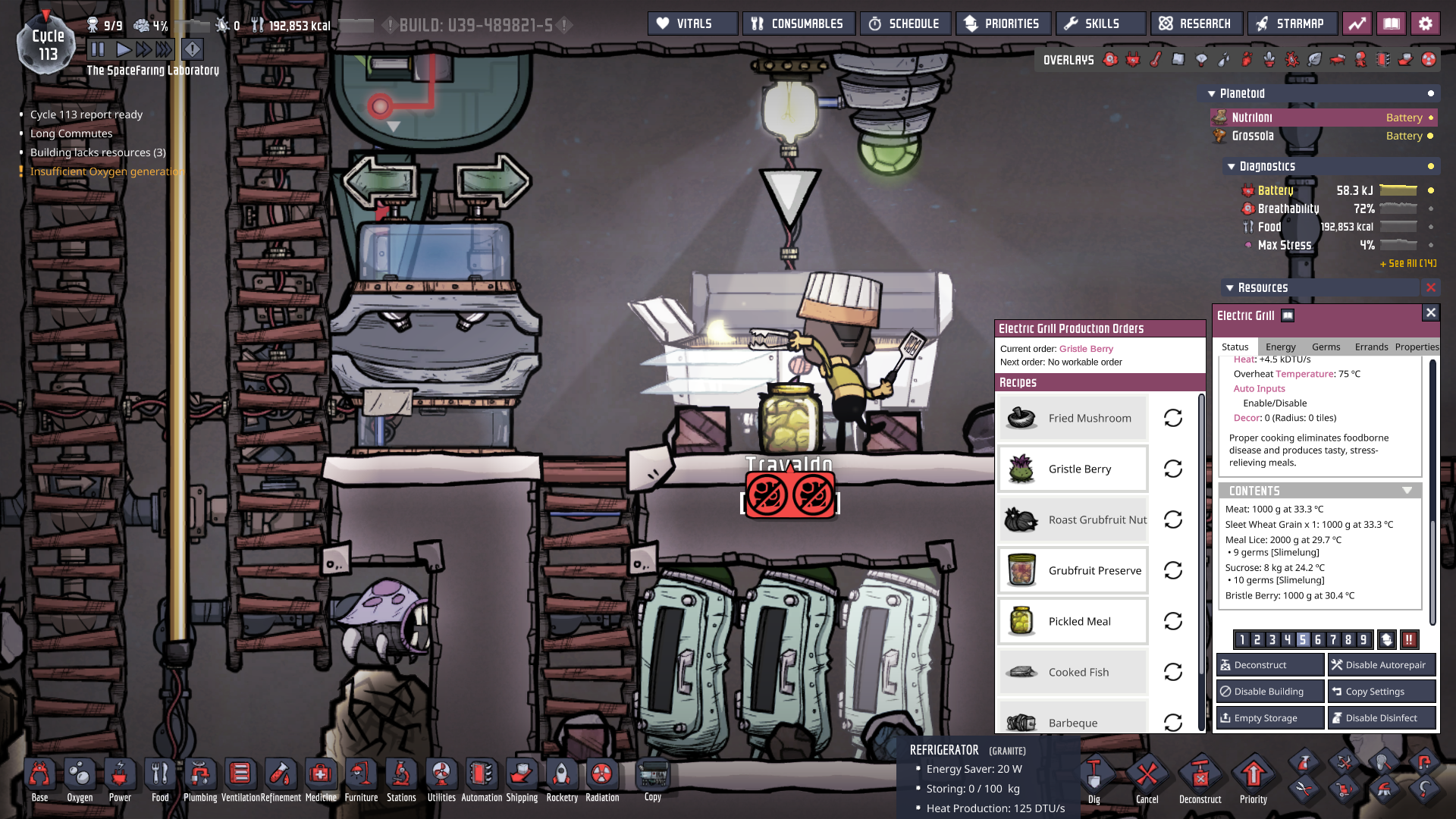 When there are no ingredients available for one or more orders on the Electric Grill, the progress bar on currently worked order is hidden behind the warnings.