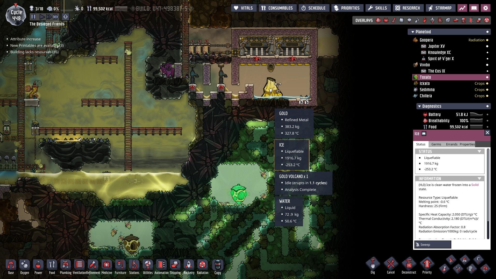 There's something shady going on with water and temperatures. I don't even know when this is happening, only to realize in the middle of the game "oh, there's ice there". A goddamn 10 tons of ice tile - out of nowhere, this is crazy.